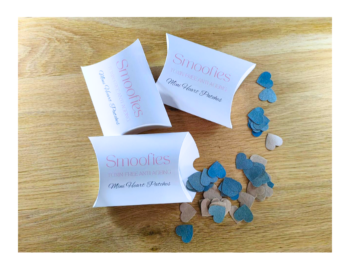 80 organic, unbleached, compostable mini patches of Smoofies anti-wrinkle heart patches.