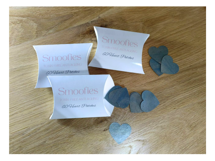 60 patches of unbleached, organic, safe, chemical-free Smoofies anti-wrinkle patches.